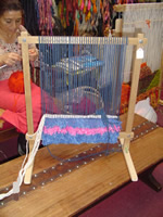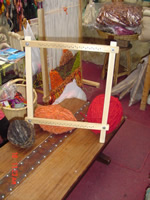 Este es un telar vertical pequeño. Es muy utilizado para aprender puntadas y tejidos en telar vertical. En este tipo de telar aprende a hacer tapices y tapetes. Igualmente se pueden elaborar telas pequeñas para cojines, bufandas, colchas, entre otras cosas.