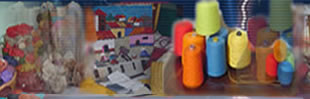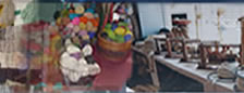 You can find material from natural source like wool (in different diameter and colors), cumare, yute spined, horse`s mane spined, leather`s remmant. Besades we have looms (vertical), frames (to make bedspread, cushions), needle, crochet hook.